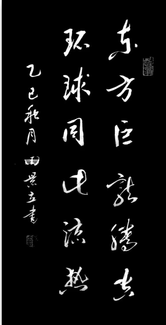 田景立,生于1951年,毕业于北京师范大学中文系。历经时代磨难洗礼,自强不息,历困弥坚。自幼酷爱书法勤学不辍,并有独到见地,深崇“书者心画”之论。认为技法功力以入门,积学修德以入境。主张师古而不泥古,书作宜恣情随性,崇尚自然,忌做作拘谨,以坦露情性,遣渲怀抱,以呈初心,彰显赤子。每每铺纸浸毫始于创作,倏乎从现实步入了幻境……脱开尘俗,远离羁绊飘飘乎如凭虚御风,邀遊于广袤无垠的宇宙。心梦相偕,痴醉飞天……笔走龙蛇,曼妙的线条是心灵的曲线,错落的铺排是心曲的格局……古人云“书者心画也”信哉斯言!诚于中而形于外。心志情性蕴于内,行云流水呈乎外。内美而外妍,志豪而势弘。真楷,若处子之静。行草体激昂之情。动静寄寓纤毫,情性见乎笔端……此书法之乐之美之妙也!