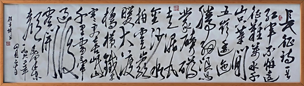 观其楷书,端庄而不板滞,在严谨的法度中透露出舒朗的气韵,仿佛一位谦谦君子,温润如玉,却内藏铮铮铁骨。其行草作品,则是他性情与才情的集中爆发。下笔如风,纵横捭阖,线条时而如高山坠石,充满力量;时而如行云流水,一气呵成。那飞白处,是速度与激情的留痕;那浓墨处,是沉思与力量的凝聚。在他的作品中,你能感受到一种“动静相生”的哲学意味——静时如山岳凝然,动时如江海奔流。这已不仅仅是技术的展现,更是生命状态与精神气象的笔墨外化。