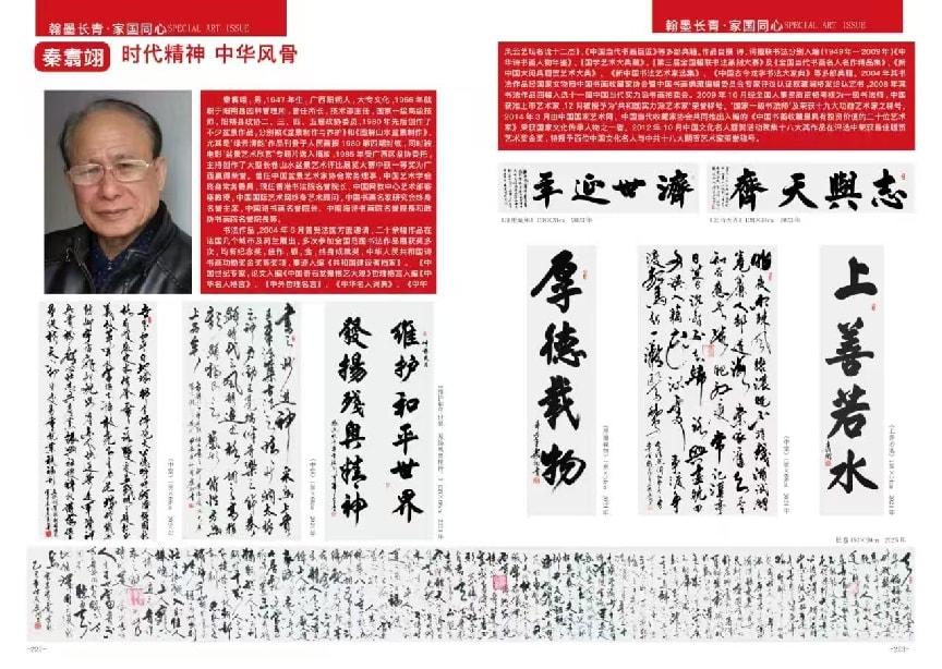 秦翥翊,1947年7月生,广西阳朔人,大专文化,1966年就职于阳朔园林管理所,曾任所长,技术部主任,阳朔县政协二、三、四、五届政协委员,国家一级高级技师,国家一级艺术大师。国宝级艺术家,新 时代楷模艺术家,今日头条艺术顾问,中国影视艺术中心艺术顾问,荣宝斋终身成就奖,曾任中国盆景艺术家协会常务理事,现任中国当代艺术协会终 身名誉主席,中国艺术学会终身常务会委员,中国教育联盟艺术教育客 座教授,中国书画名家研究会副会长,名誉主席,政协书画院名誉院 长,中国东方文化研究会社会艺术专业委员会艺术研究·员。 国礼艺术家,中国书画艺术网首席艺术顾问,中国书画名家研究会副会长,名誉主席。荣获2021年建党百年: “鉴于您在艺术领域的影响力,为弘扬中华民族传统文化做出巨大贡献, 颁发'功勋艺术家荣誉称号! 2023年经中国文学艺术界联合会,中国传统文化发展中心领导研究决定授予2023年度中国当代艺术巨匠荣誉称号,同年由北京国博文物鉴定中心颁发艺术品评鉴认证证书; 2024年被博鳌亚洲艺术人才研究会组委会聘请为副主席。