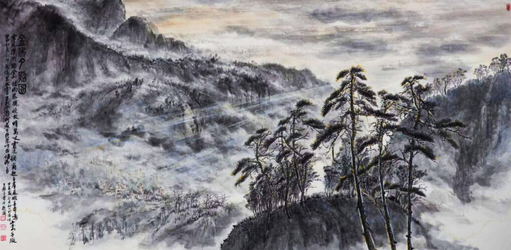 站在《金佛夕照图》前,我们看到的不仅是水墨的黑白交响,更是民族精神的磅礴抒发。王锁平的水墨语言早已超越了传统的程式,他既得宋人山水之骨,又承元人水墨之气,更熔铸现代视觉张力,创造出独具风格的"王氏山水"。在那云雾氤氲、气韵生动的画面背后,是艺术家对自然的深刻洞察和对艺术本质的终极情怀。他的笔墨不再是技巧的炫耀,而是生命境界的外化,是中国哲学精神的诠释。