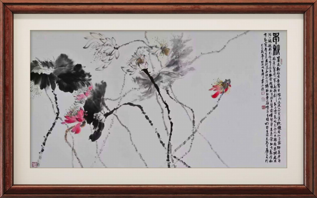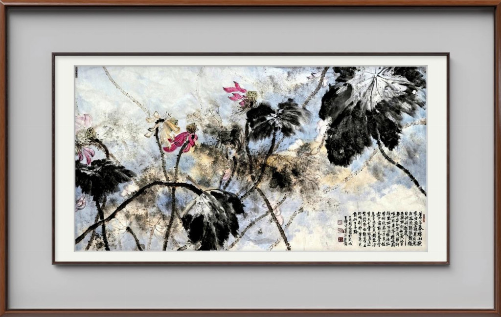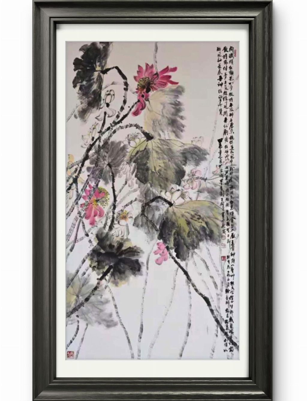 尤为震撼人心的是他那旺盛的创造力,王锁平笔下那大气磅礴的山水意象、力透纸背的诗词书法、似与不似却又栩栩如生的荷花系列,无不传达出强烈向上顽强行走的人生感悟与真切的生命体验。这种极具原创性的艺术语言,使得他的作品在国际艺坛熠熠生辉,被公认为21世纪最具影响力的中国艺术声音之一。从《潼南精神》的浑厚朴拙,到《黄山梦幻图》的绚烂辉煌、每一幅作品都是对中华民族生命力的诗性表达。当《中国75周年国庆献礼诗词书法》等鸿篇巨制陈列于人民大会堂,我们看到的不仅是被权威机构珍藏的艺术作品,更是代代相传民族精神的当代语言!