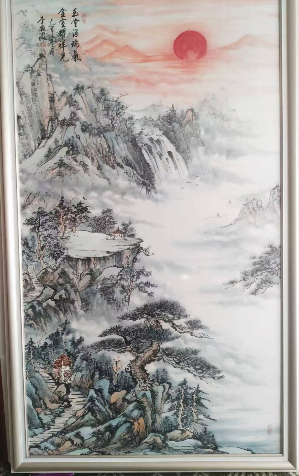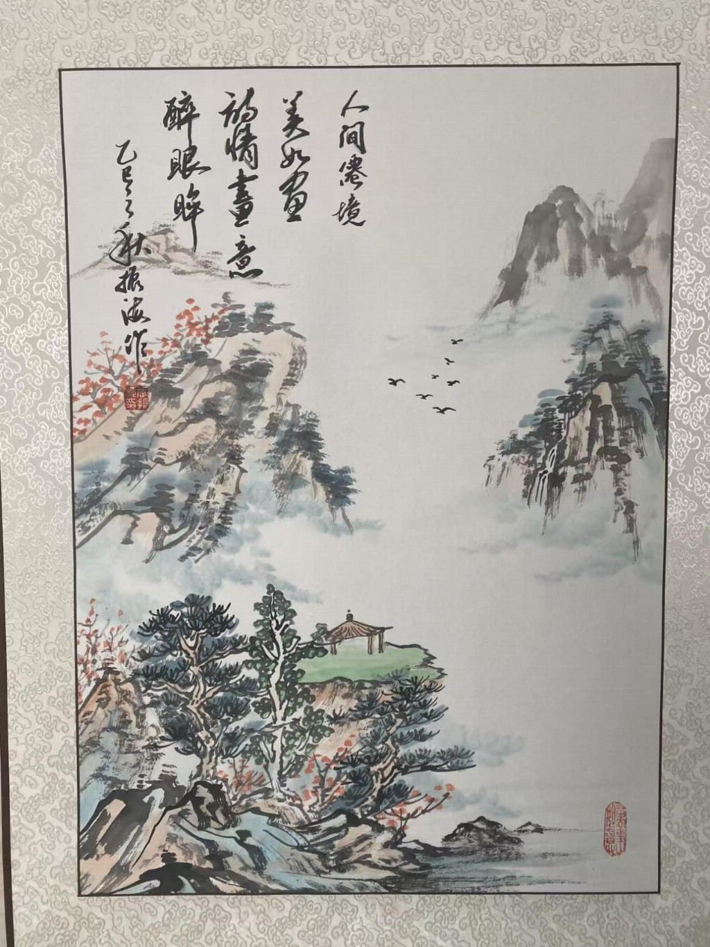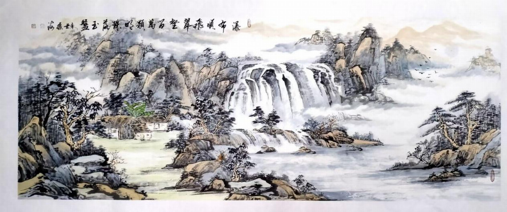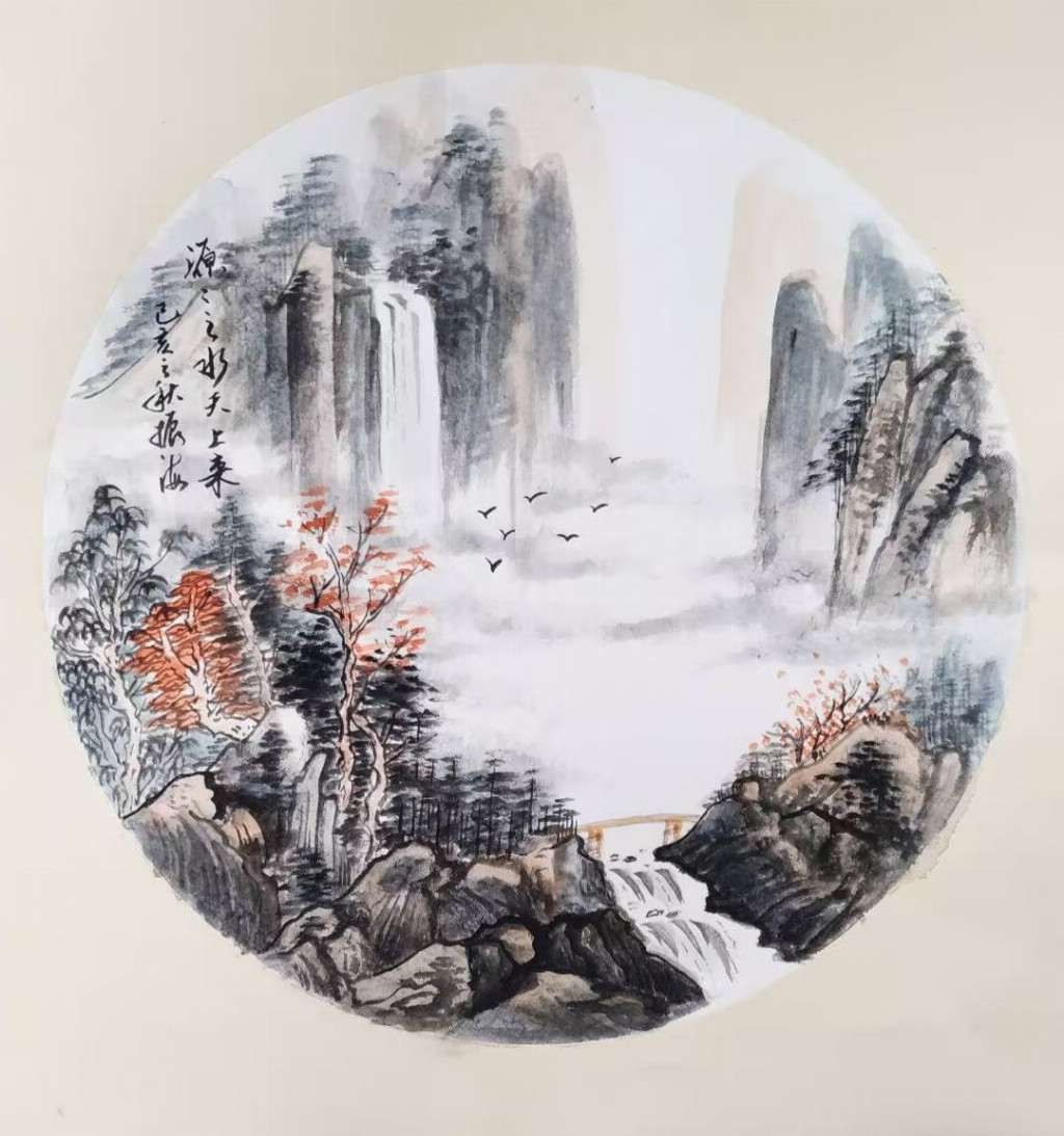他的山水,拒绝成为壮丽山河的简单复刻。一树一石,都承载着时间的重量。你会觉得,那深山古寺的飞檐,曾见证过无数朝代的月光;那江心独钓的扁舟,正承载着千年不变的孤独。他的笔墨深处,回荡着北宋山水的雄浑气魄与元人笔墨的清远意趣,但他将它们统统化作了自己的语言——一种不急于言说,却值得用心聆听的语言。
