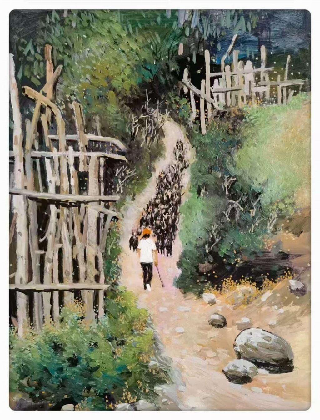 看他的风景油画,无论是《黄土高原系列》还是《江南水乡组画》,我们都能感受到一种超越物象的“意境”。他运用刮刀、画笔等多种工具,创造出兼具肌理感与流动性的独特笔触,使巍峨的山峦具有了书法般的骨力,让静谧的流水蕴含着诗意般的空灵。这种“油彩中国画”的探索,不是简单的技术嫁接,而是文化血脉在新时代艺术形式下的自觉流淌与升华。