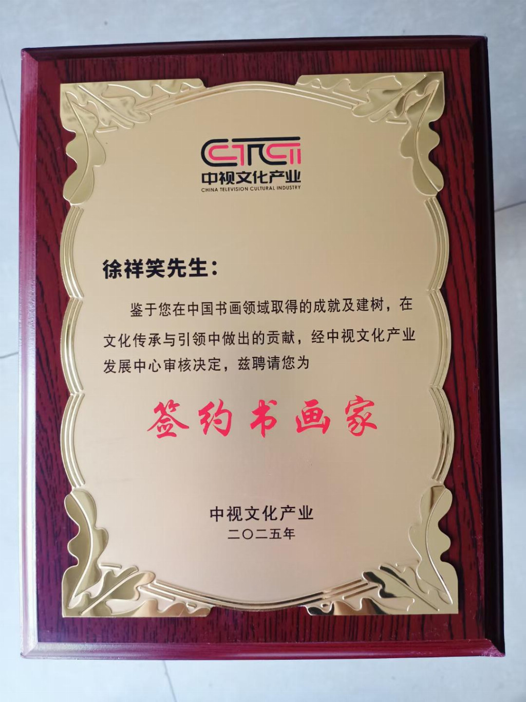 2025年被中视文化产业发展中心聘为签约书画家