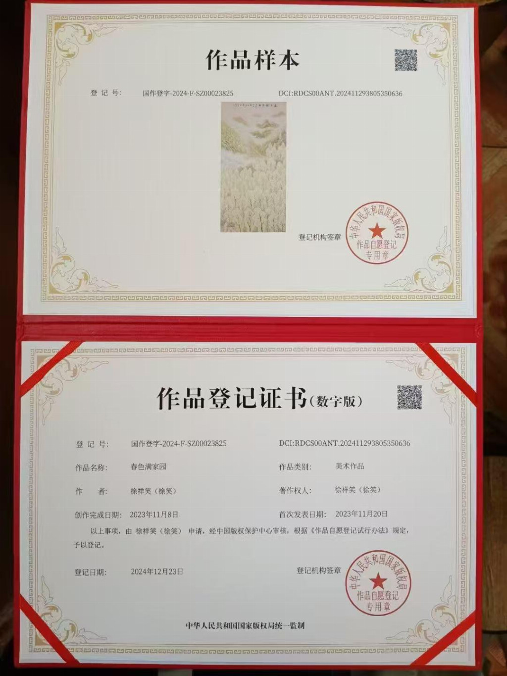 2024年美术作品(国画和书法)被国家版权局登记