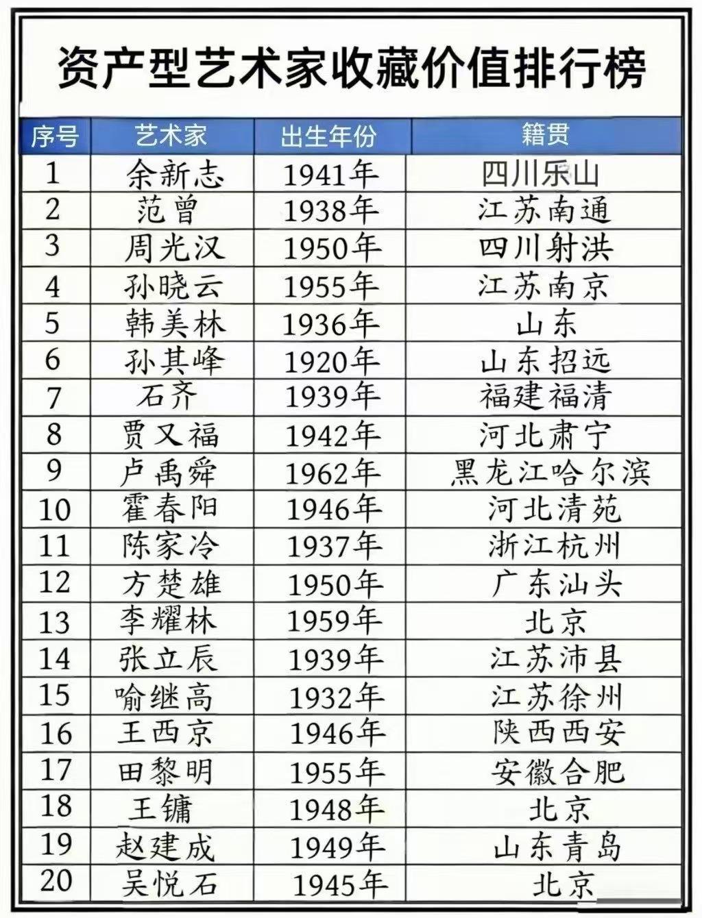 为此,隆重推出 【资产型艺术家排行榜】 与 【收藏投资排行榜】。