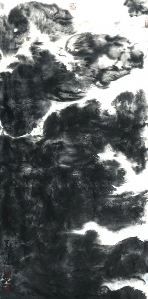 中国传统山水画的创作,向来都是有以天人合一的精神为主旨,那种在虚实中的澄怀气象的畅神情怀,无不能皆是能让人深感意味之无穷!但从当下画坛内来看,写意山水的创作却并不乐观,更多的年轻画家,则是倾向于西式油画的创作体现,究其原因,一方面是因为写意山水本身那较高的笔墨难度和表现难度,另一方面,则就是因为对传统文人精神和立意感受的严重缺失!而从这一角度上来看,那些真正能够深谙于传统写意山水的丹青画家,也就会显得更加可贵,臂如今日的刘冯先生便就可以说是其中的一位佼佼者!在创作上,刘冯先生是能通过极其纯粹的水墨形态来实现“元宇宙”山水的意识理念,并相济结合于自身的艺术情才和心迹思绪,使作品最终达到一种视觉表现形式和精神意义高度相同频的图式意境!
