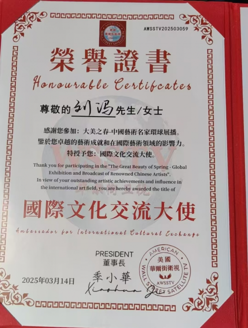 刘冯,实名刘泽旺,号真龙山人,1968年生。资深金融人士,艺术品收藏家,画家,国家一级美术师、长沙市新邵商会名誉会长、中央电视台《艺朮传承》栏目客座教授、首批非遗技艺传承创新人物、孔子奖章组织委员会艺术研究员、元宇宙水墨山水画的开创者。他的作品被许多艺术频道和知名媒体争相报道,同时《中国现代美术通史》、《新时代领航艺术名家》、中国美术精品集》、《东方收藏报》、中国书画报》、《世界美术教育史》等著名书刊均登载他的作品。2023年,由中国美术出版的巜国家宝藏书法辞典》用六个版面刊登其作品,同年与范迪安、何家人、苏士澍、孙晓云共同出版《大道同行》中国艺术名家雅集。2024年与中国书协主席孙晓云共同出版《国宝级艺术家》一书。2025年蛇年“迎春杯”全国优秀作品评选活动中,其作品《活力》与秘境均成功入选。同年与范迪安出版《百年巨匠、时代楷模》作品集向两会献礼。他的作品在中国国家画院和国家会议中心及美国、法国、俄罗斯等国都有过展出。美国、俄罗斯、印度、英国、阿根廷五国大使专门为他的作品代言。2025年,在法国卢浮宫