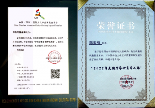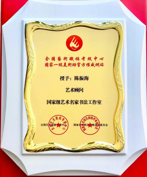 陈振海,字奋之,号无逸斋居士,1950年12月生于开漳祖地福建省云霄县开漳圣王故居燕翼宫,为开漳圣王陈元光四十二世裔孙。七岁起在无人鞭策无人指导的情况下刻苦自学书法,后务农务工,艰难困苦,不改初心。积六十年之努力,遂至人书俱老,五体兼精,成为一位集大成书法艺术家。艺术传略载入《百年中国书画史》,《中国美术史》,《中国美术通史》,《世界美术人物志》并发表于《中国文艺家》等权威刊物。自2015年以来先后被遴选为中国翰墨传承巨匠,中国书坛领军人物,中国书画形象大使,中国文化艺术国际传播大使,中国艺术福布斯名人,艺术巅峰人物,中国文博会推荐艺术家,中国国宾礼特邀艺术顾问,国家美术师及润格评审委员会艺术顾问,国家艺坛代表性艺术家,中国世界级艺术大师。与当代书画界领袖和艺术流派代表性艺术家合编出版作品集十多部,出版《翰墨中华名家档案陈振海作品集》一部。为当代书坛最具影响力和作品升值空间的实力派艺术大家之一。中国艺术家信息公示系统认证编号AT-202306160442.