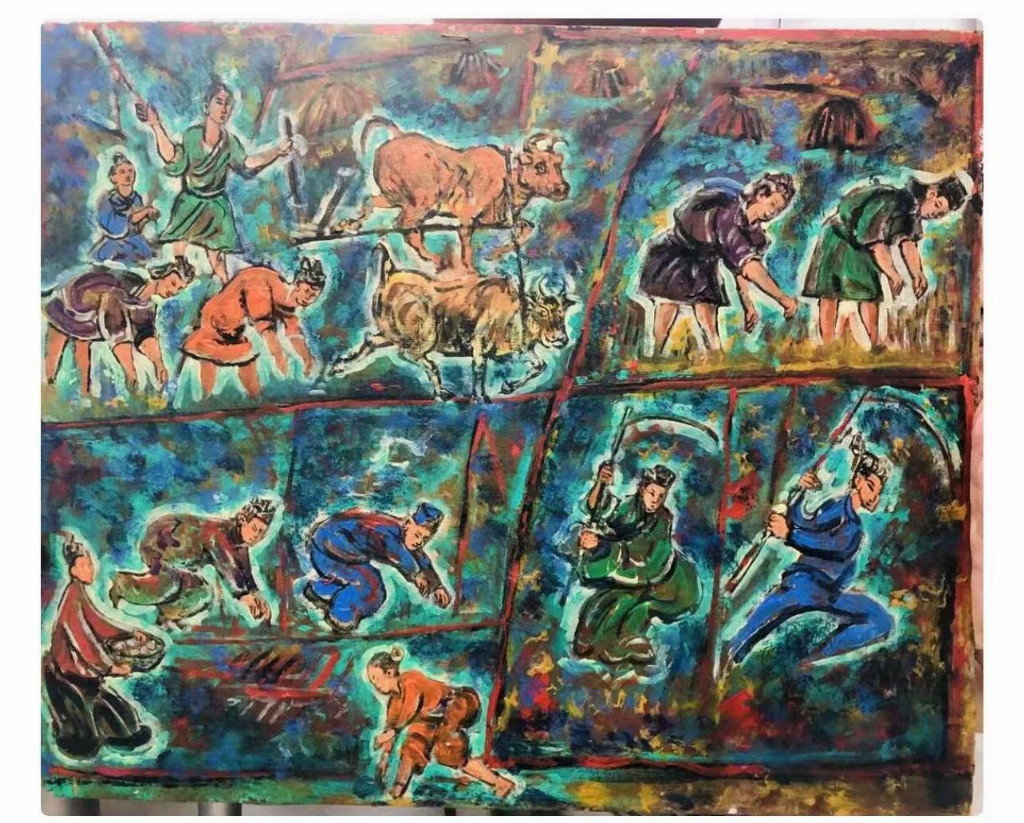 中国汉画百图油画精品《农耕图》