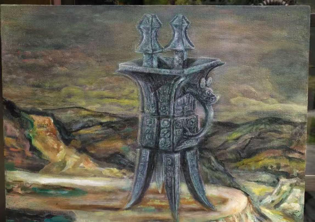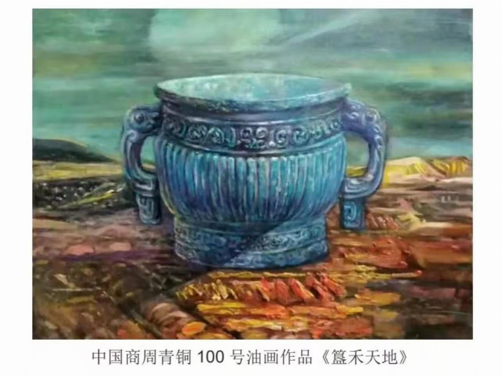 中国青铜100号文物油画作品《商周青铜單》
