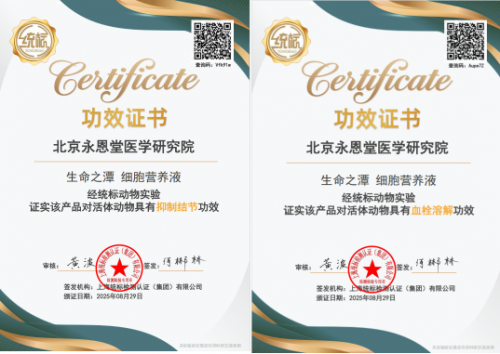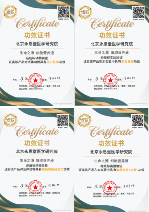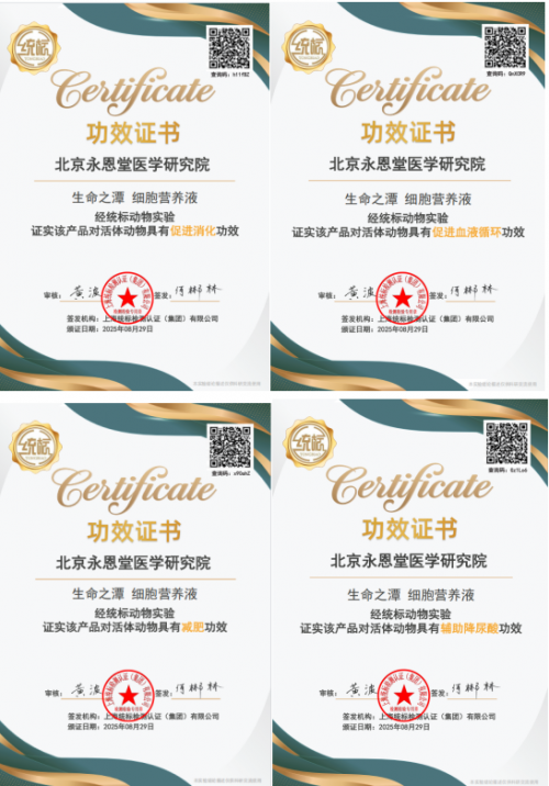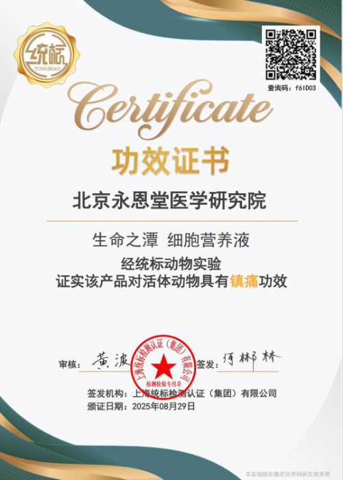 北京永恩堂医学研究院陈福顶先生经30多的艰苦努力,成功研究成功一种以矿物质水为基础的多功能细胞营养液,目前35项功效经权威检测机构活体检测各功效得以证明,并获得功效证书。