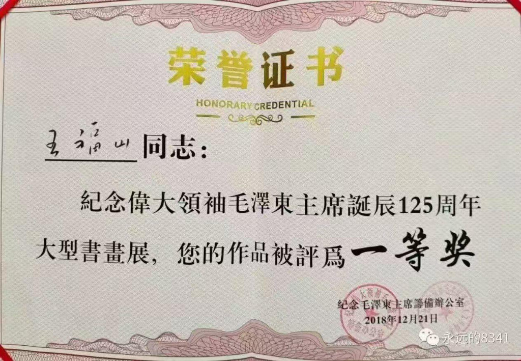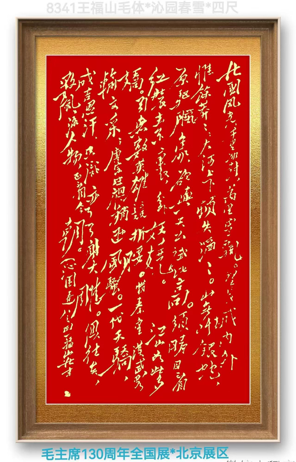 为CCTV军事题《胜战》雅昌拍卖16万元价格成交。福建率真新春拍卖会,毛体《六盘山》《咏梅》分别以1.2万元及1万元价格成交。王福山毛体作品在美国纽约时代广场展播一周,在全球传承毛体,弘扬中国红色文化。百度ai搜《王福山》或《王福山毛体》央视、新华网、人民网等百家主流媒体报道。