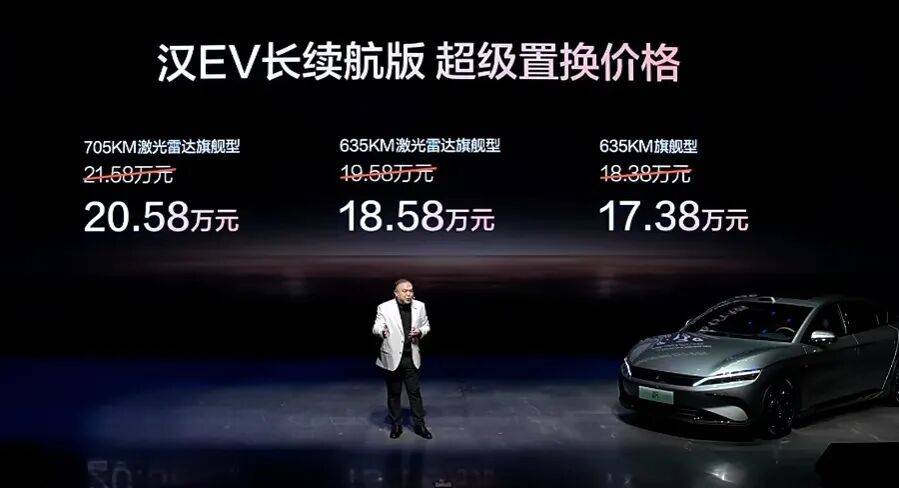 此次,汉DM-i长续航版共推出4款车型,补贴后售价15.98万~18.98万元;汉EV长续航版共推出3款车型,补贴后售价17.38万~20.58万元(10月31日前完成购车可享1万元超级置换补贴)。同时,比亚迪还为用户准备了包含置换补贴在内的至高价值3.8万元七大礼遇。
