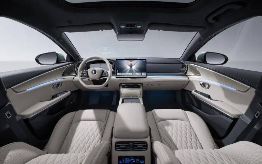 汉长续航版的座舱体验迎来全面升级。材质和用料上,副仪表台增加科技感十足的激光拉丝面板;副驾台配备婴儿肌触感且耐脏易打理的皮质材料。与此同时,围绕用户对内饰简约的需求,新车全系升级电子怀挡,打造高级的座舱氛围。