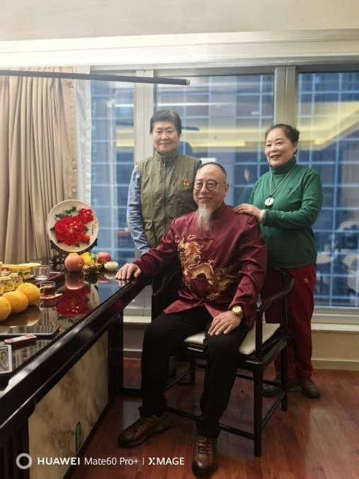 Chairman Liu Peixun of the International Hongmen Federation cordially met with Academician Zhang Guotu of the World Intangible Cultural Heritage, Senior Advisor Zhang Youhao, Daoist Priest, and his wife in Beijing. They had a dinner together and took a group photo as a souvenir