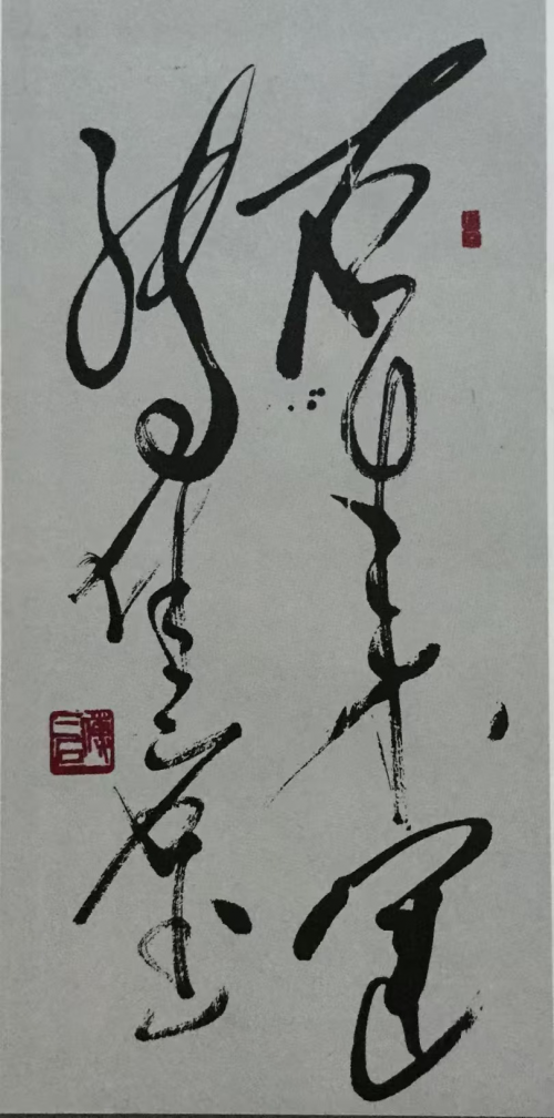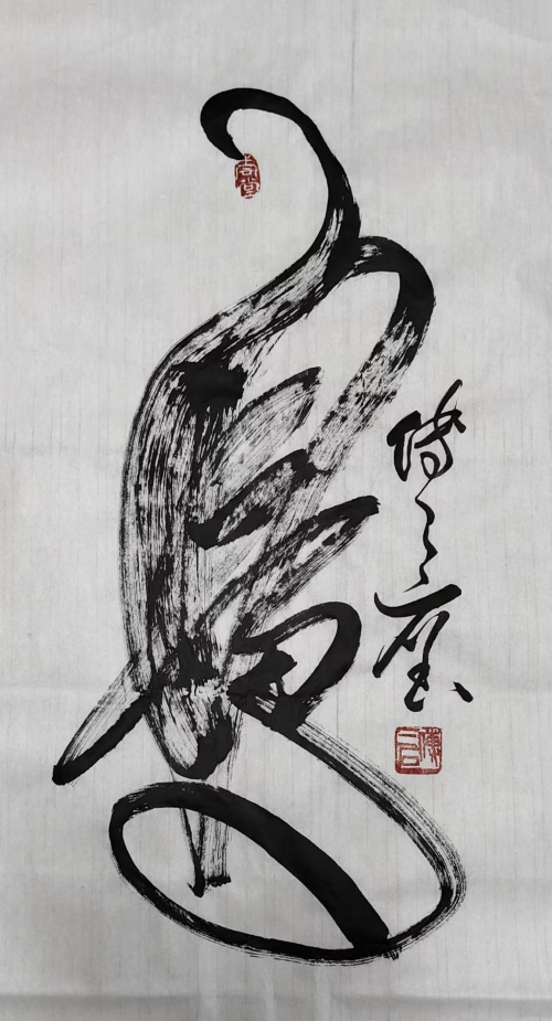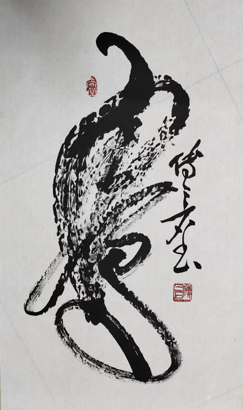 在书法上,他从不囿于技法层面,而是以中华优秀的传统文化为根基,探寻书法的真谛,追求“自然间、人世情、书法象”的最高境界。他提出了“艺术写字和写字艺术”的辩证观点,并揭示了书法的形式密码:“点的延长是画,画的浓缩是点,密不透风是片,疏可跑马是线”。还有其独特性的理论包括:书法应具“韬略气”,绘画当是“书卷气”。