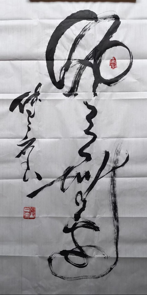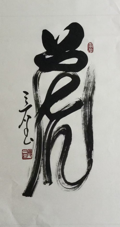 代表作品与著述:书法代表作品有《一笔鹰,一笔飞龙,一笔虎》,《千佛字》《天下和》《福寿一字》,《百鹰戏世》等;文化作品有《阴阳度》;宏篇大作有《救世经》;套作有39首。所有创作均在三十年内申报了了著作权,彰显了其强烈的版权意识与创新精神。理论著作包括《自然人与书法自然》,《文武相合——书法与武术》,《究竟什么是书法艺术》等文章。