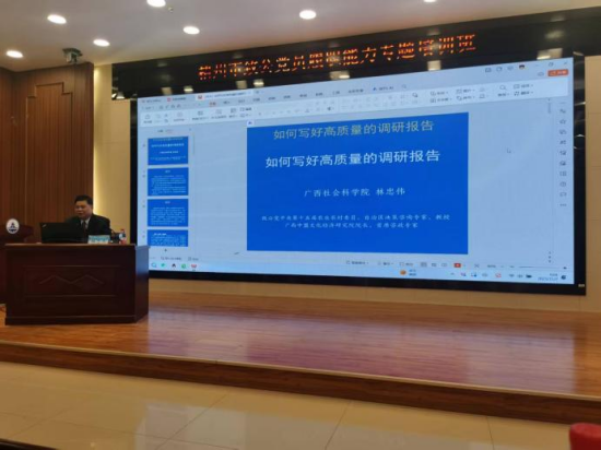 在中共梧州市委统战部、中国致公党梧州市委的大力支持和热情邀请下,林忠伟(广西)产教科咨政联盟团队6-7日赴梧州考察调研,并开展参政议政工作交流活动。林忠伟教授授课的《如何写好高质量的咨政(调研)报告》深入浅出,通俗易懂,满接地气,获得赞誉,听课者纷纷表示获益匪浅。本次参政议政交流活动,初步了解了梧州的优势与产业发展的趋势,对梧州再振雄风充满信心。——咨政联盟团队赴梧州市授课与开展参政议政交流活动侧记