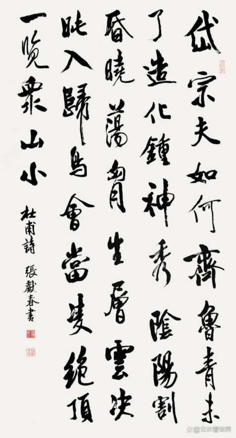 当今艺坛,书法家、画家人才辈出,但是能书者有,能画者亦有,书画双修者却很少,而能把书、画都做到极致尽美者更少之又少,张献春先生是其中的一个佼佼者。观张先生的作品,功力深厚,行、楷、隶、篆、草颇有造诣且不落案白。书作如天马行空,运笔流畅,一气呵成。师古而不泥古,学古却又变古,在传统的书法面目中注入了当下时代气息,既苍茫而有古意,又具有自己的独特的当代面貌,神情气息令人叹为观止。其行草清健劲秀、生动畅达、充满神韵,书作中流动连接的点画、奔放洒脱的线条,都带有自由空灵、超然物外的感情意味。整个书作一气呵成,字迹飘逸,落纸云烟,禅意随势而生,章法错落有致,作品格调高难,于不经意间透出书卷气”,颇得中国书法的神韵,为当代艺术作品的佳品。国画以书入画,所作源于生活、师法自然。画家眼中所见,心中所思。山水国画所表述的云彩特具立体感,花卉明暗、浓淡层次也很不错,造诣颇深。赏析书画之余,感其作品之大雅!从张献春的作品中,我们看到了一个上下求索、不断精进的人,看到了一个对美的追求有着与众不同的视角和与生俱来的灵气的人。他不骄不躁,淡泊名利,宛若一株幽兰,静静绽放属于他的芬芳。其学习宗旨是:继承传统、临池不辍、苦心研读、有所创新。
